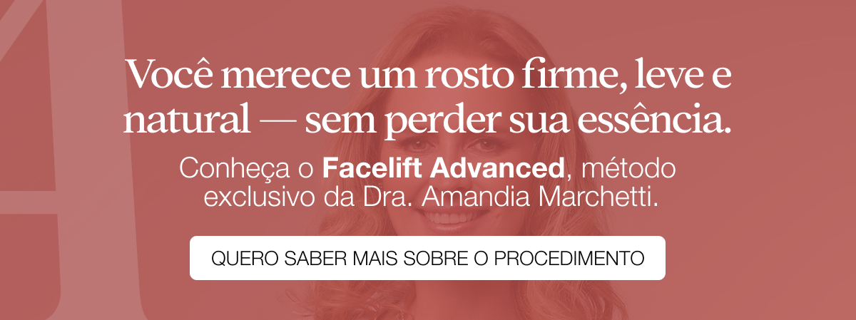 Innovando o conceito de rejuvenescimento facial, a Dra Amandia Marchetti desenvolveu o Facelift Advanced, uma técnica que alia segurança, naturalidade e o máximo de conforto. Inspirada em protocolos internacionais, executa o procedimento com anestesia local e sedação leve, possibilitando que seja realizado em clínica, sem necessidade de internação hospitalar.